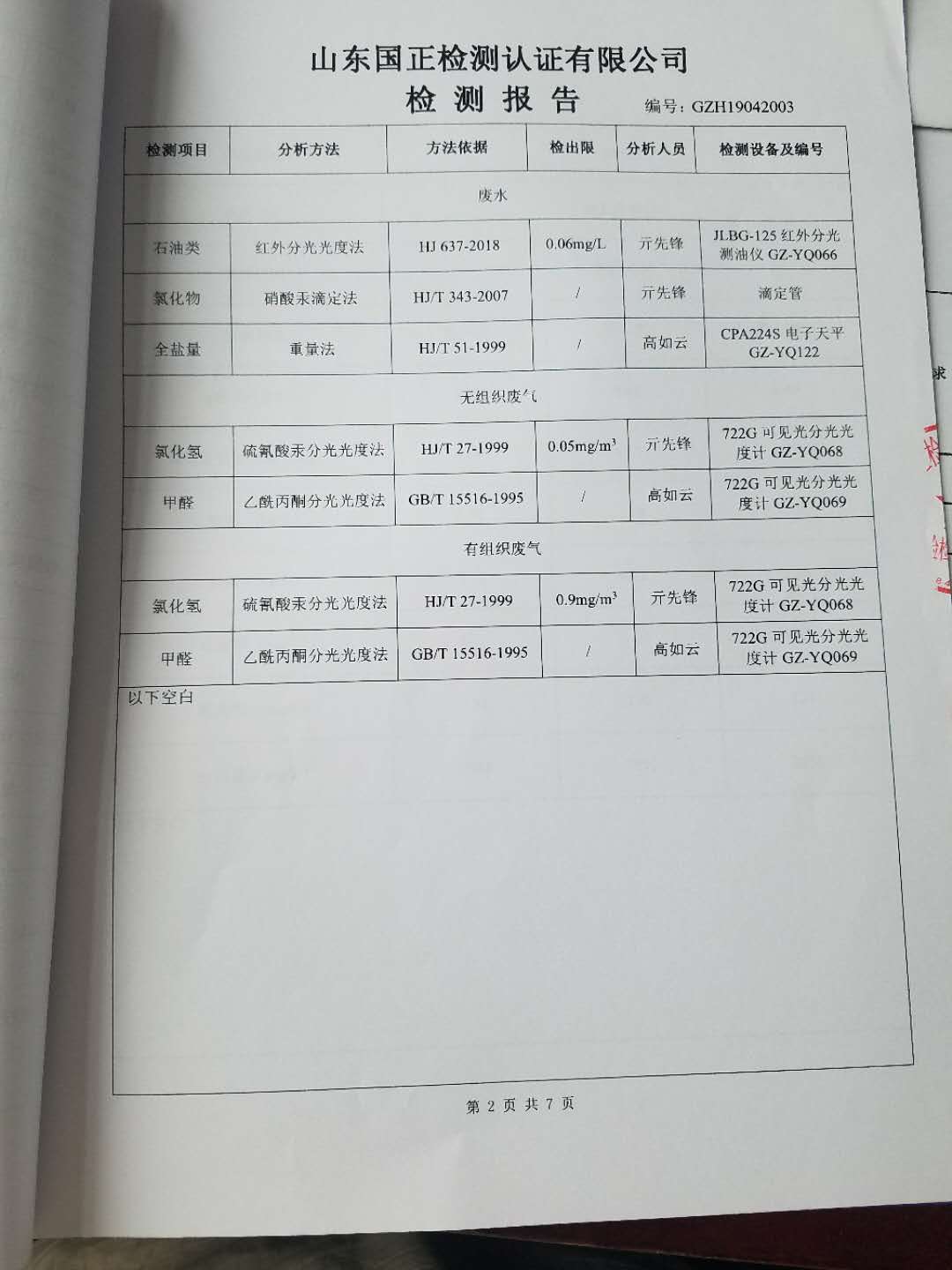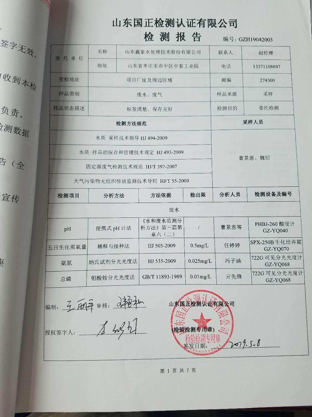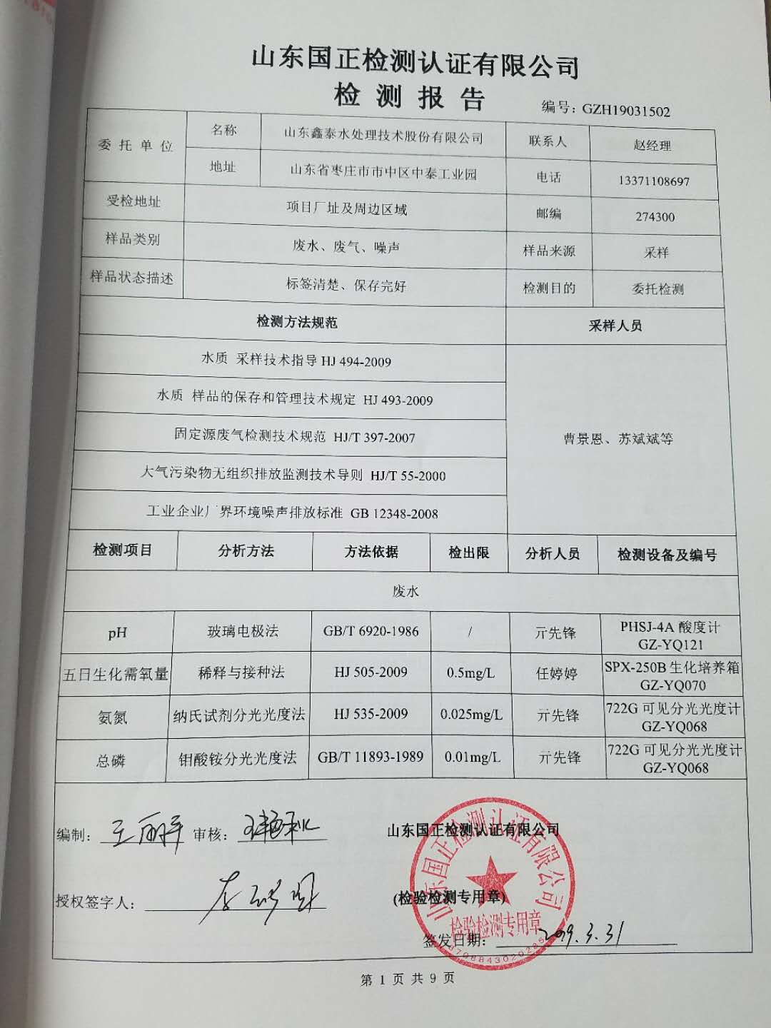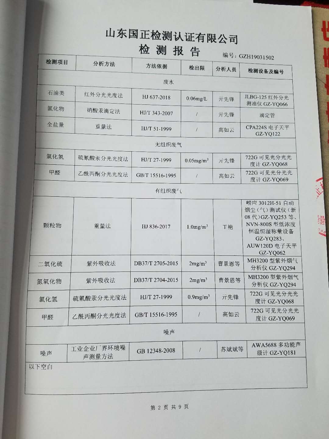 主要內容 | 與山東國正檢測認證有限公司簽訂環境檢測協議,委托第三方機構對我公司進行環境檢測,檢測頻次、地點及項目等與環評報告要求一致。 |