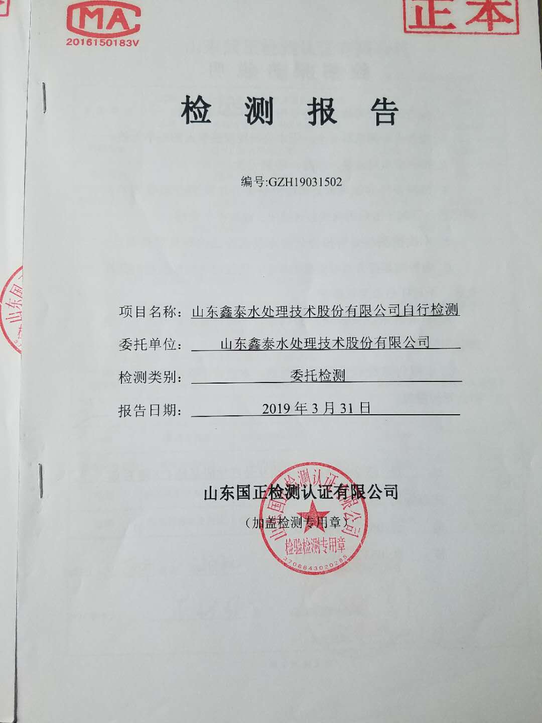 山東鑫泰水處理技術股份有限公司